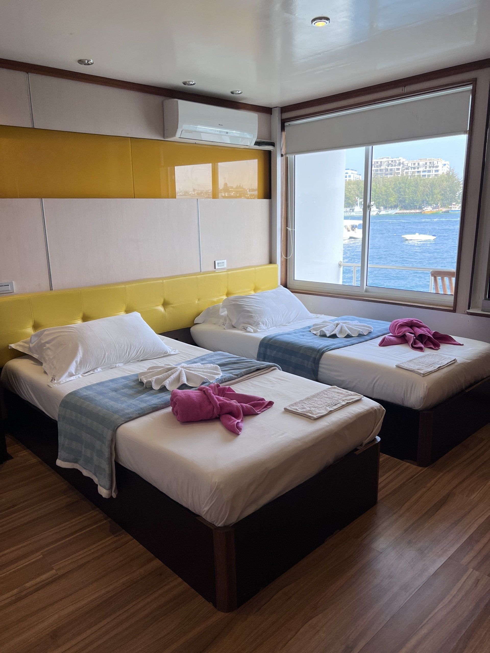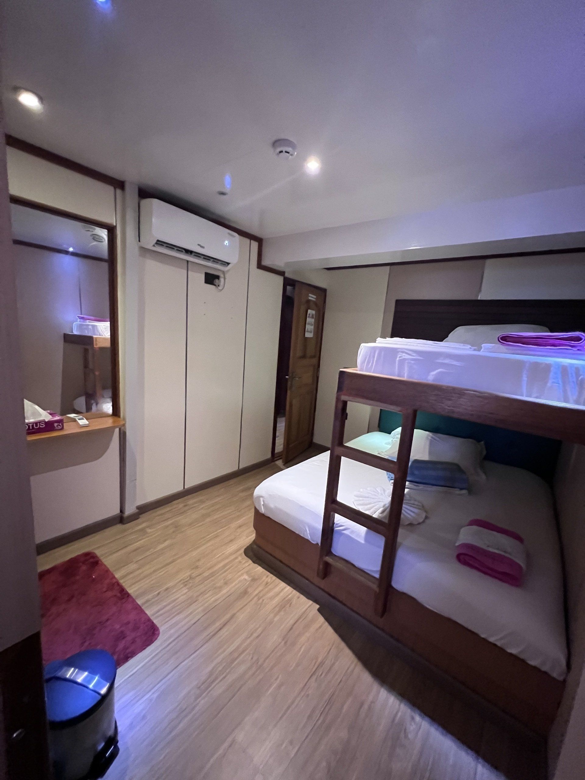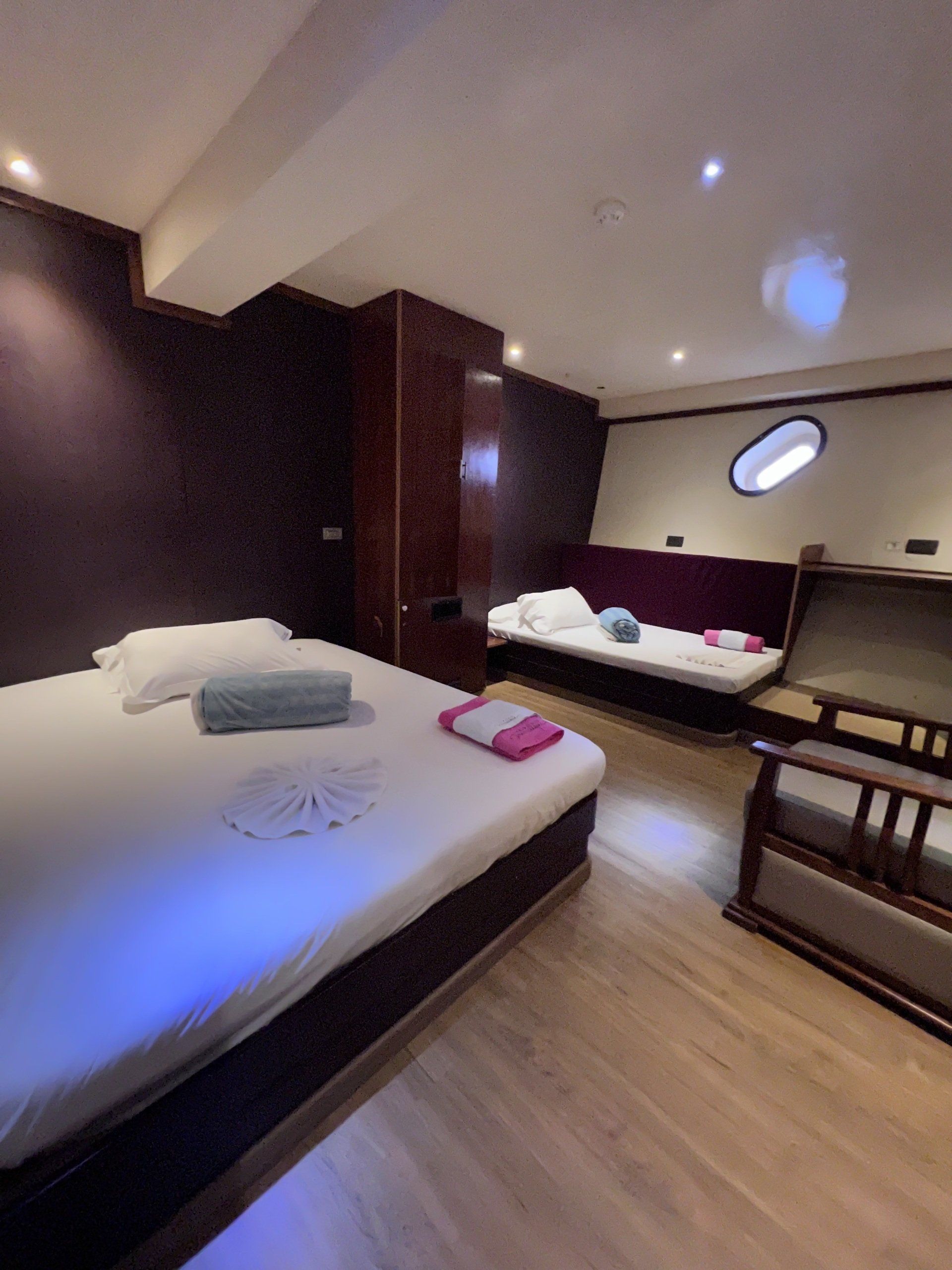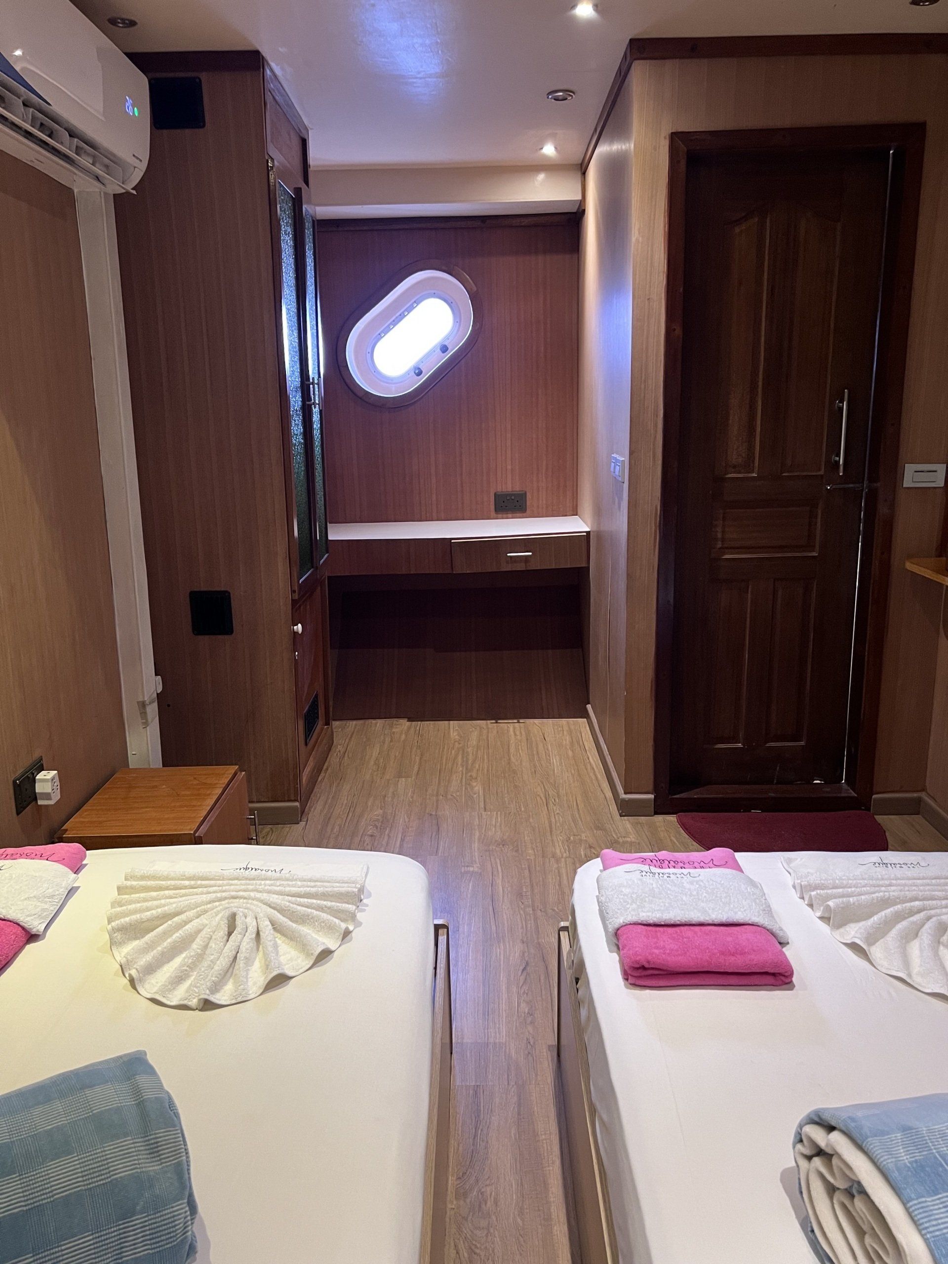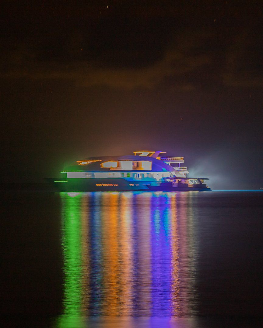 Cuenta con 4 alturas, un total de 12 cabinas, bar, restaurante, cocina, terraza y solarium con jacuzzi. Tiene una capacidad total de 24 plazas. Junto al buque principial navega el Dhoni, barco de buceo que transportará los equipos, tanques y compresores para facilitar el desarrollo de la actividad.e