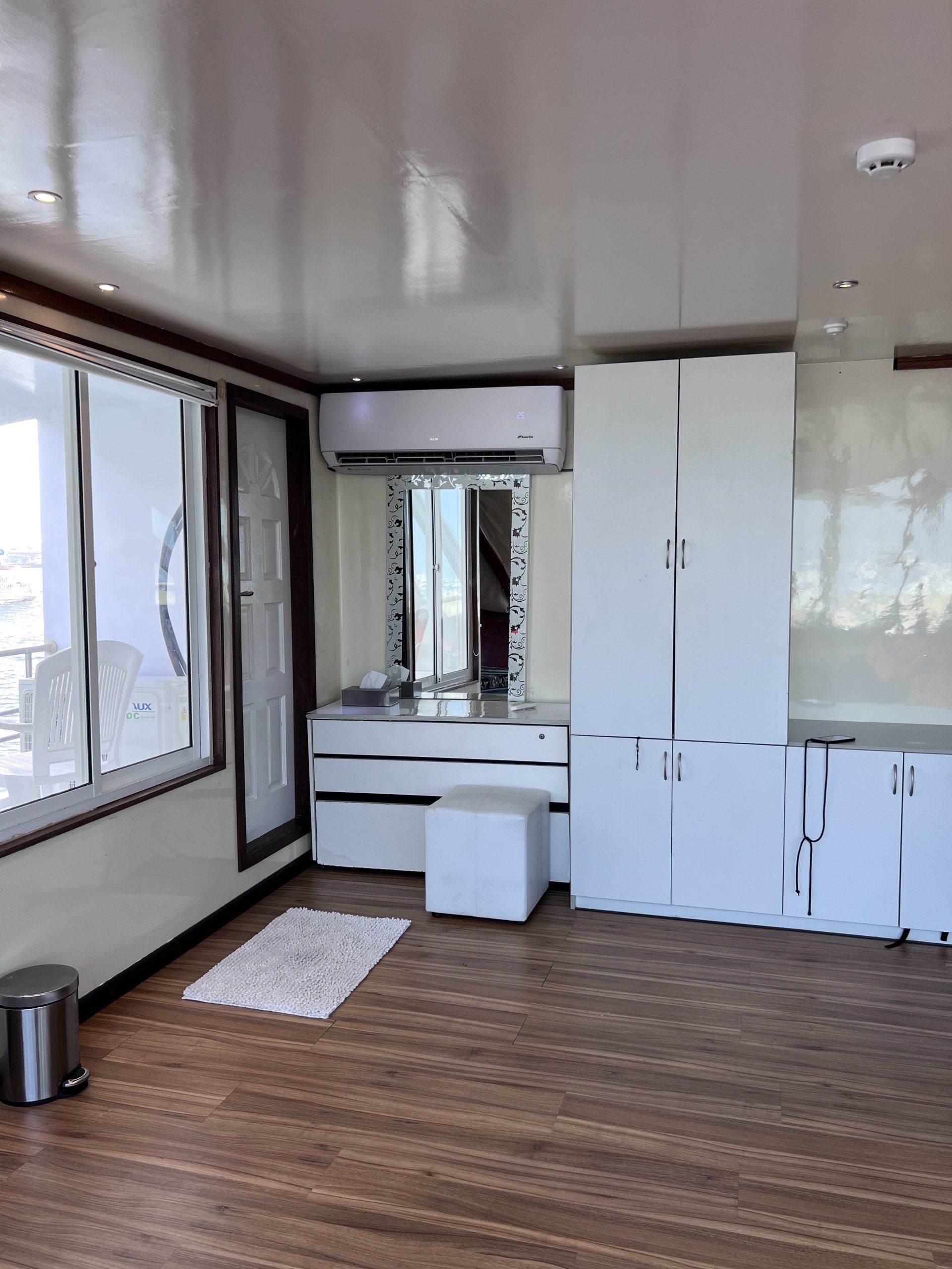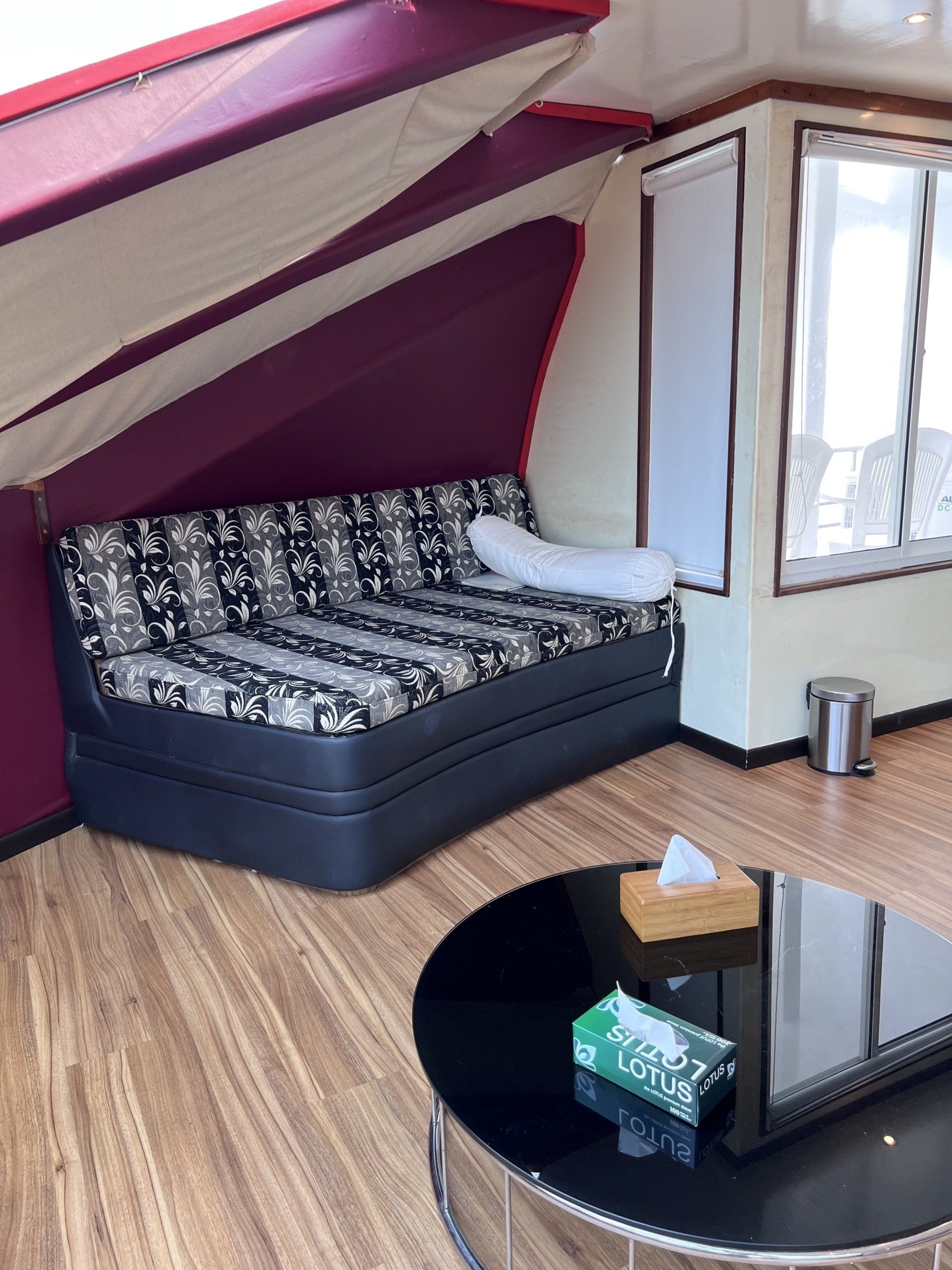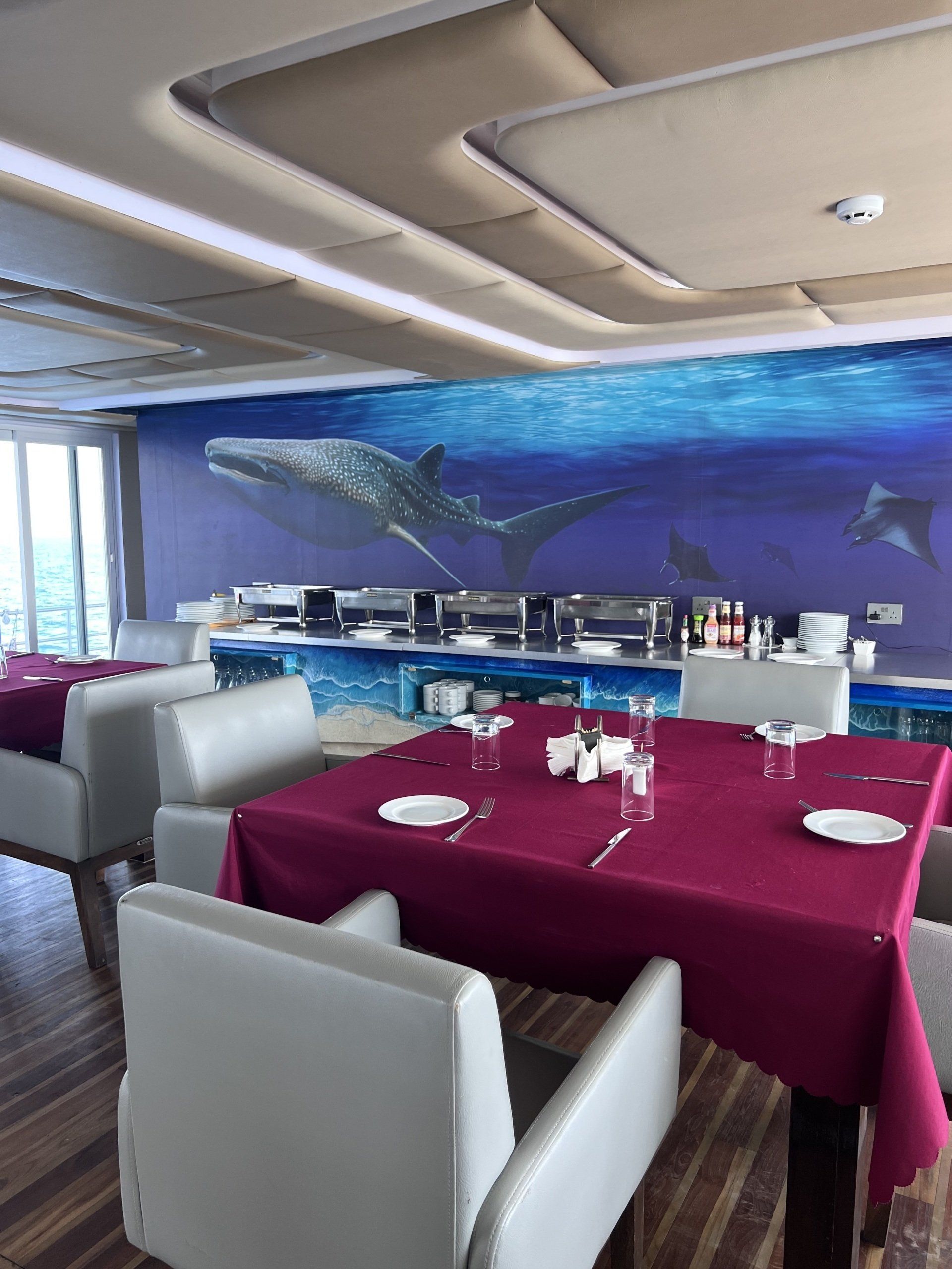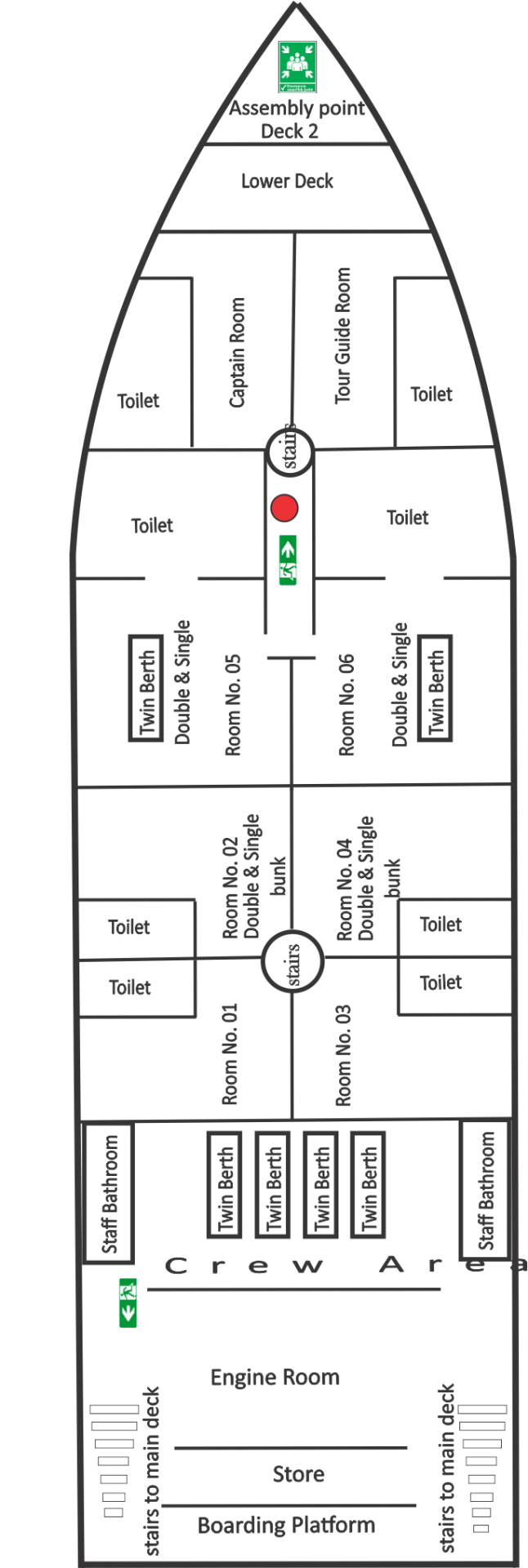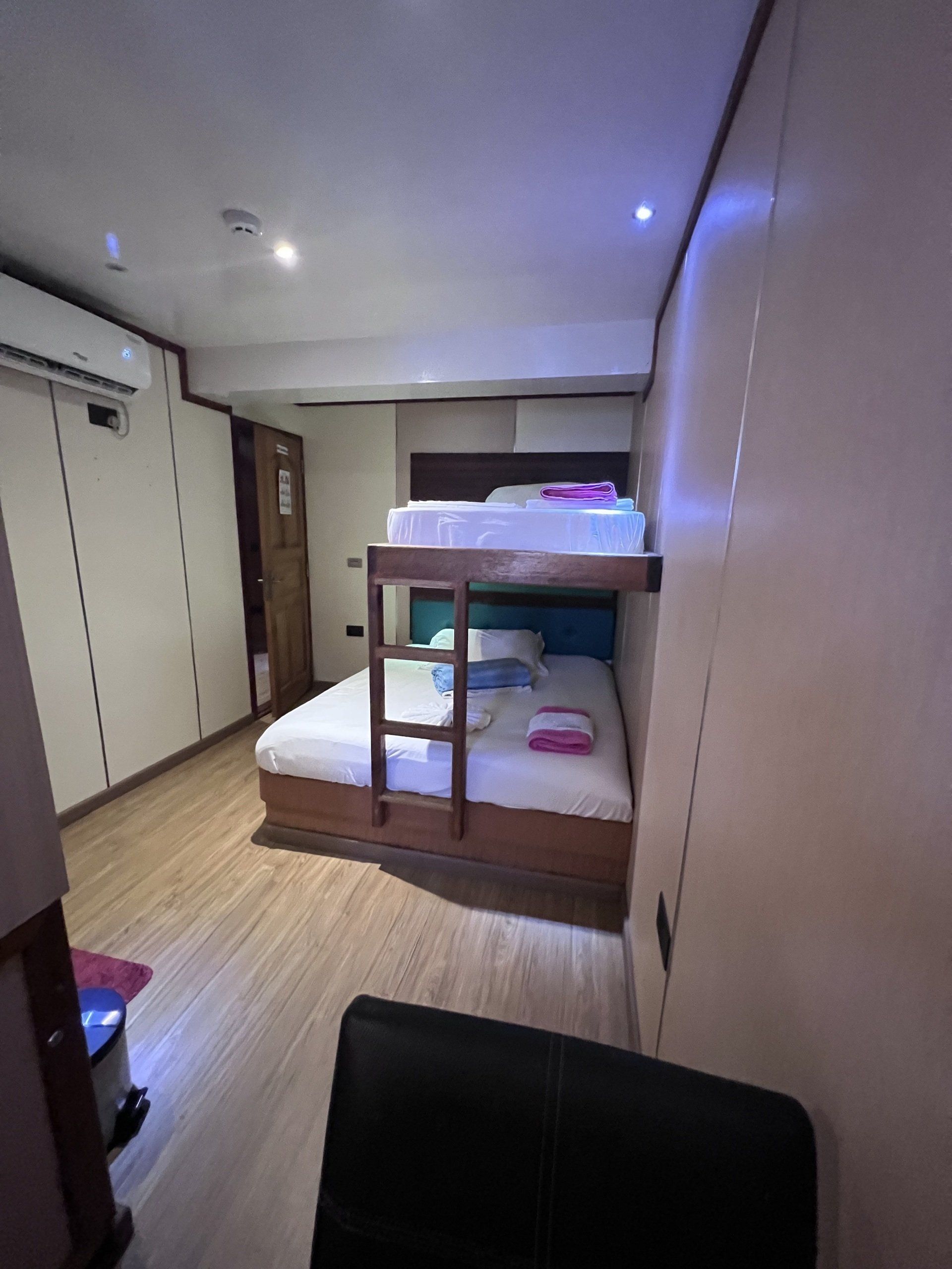 Cuenta con 4 alturas, un total de 12 cabinas, bar, restaurante, cocina, terraza y solarium con jacuzzi. Tiene una capacidad total de 24 plazas. Junto al buque principial navega el Dhoni, barco de buceo que transportará los equipos, tanques y compresores para facilitar el desarrollo de la actividad.e