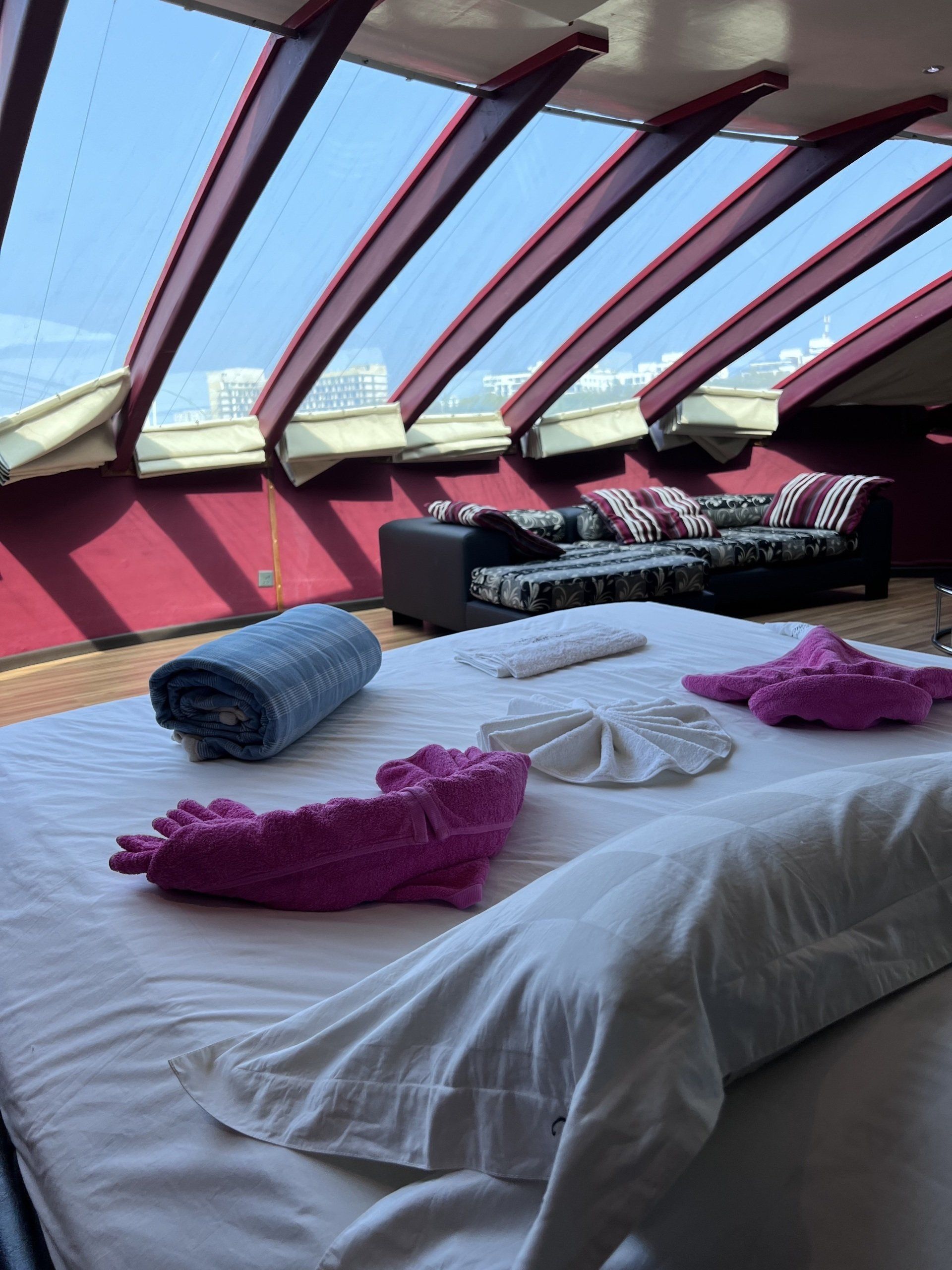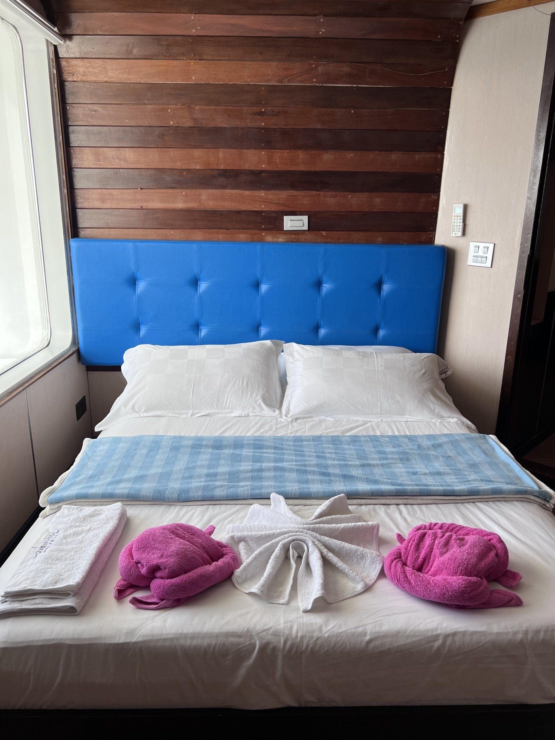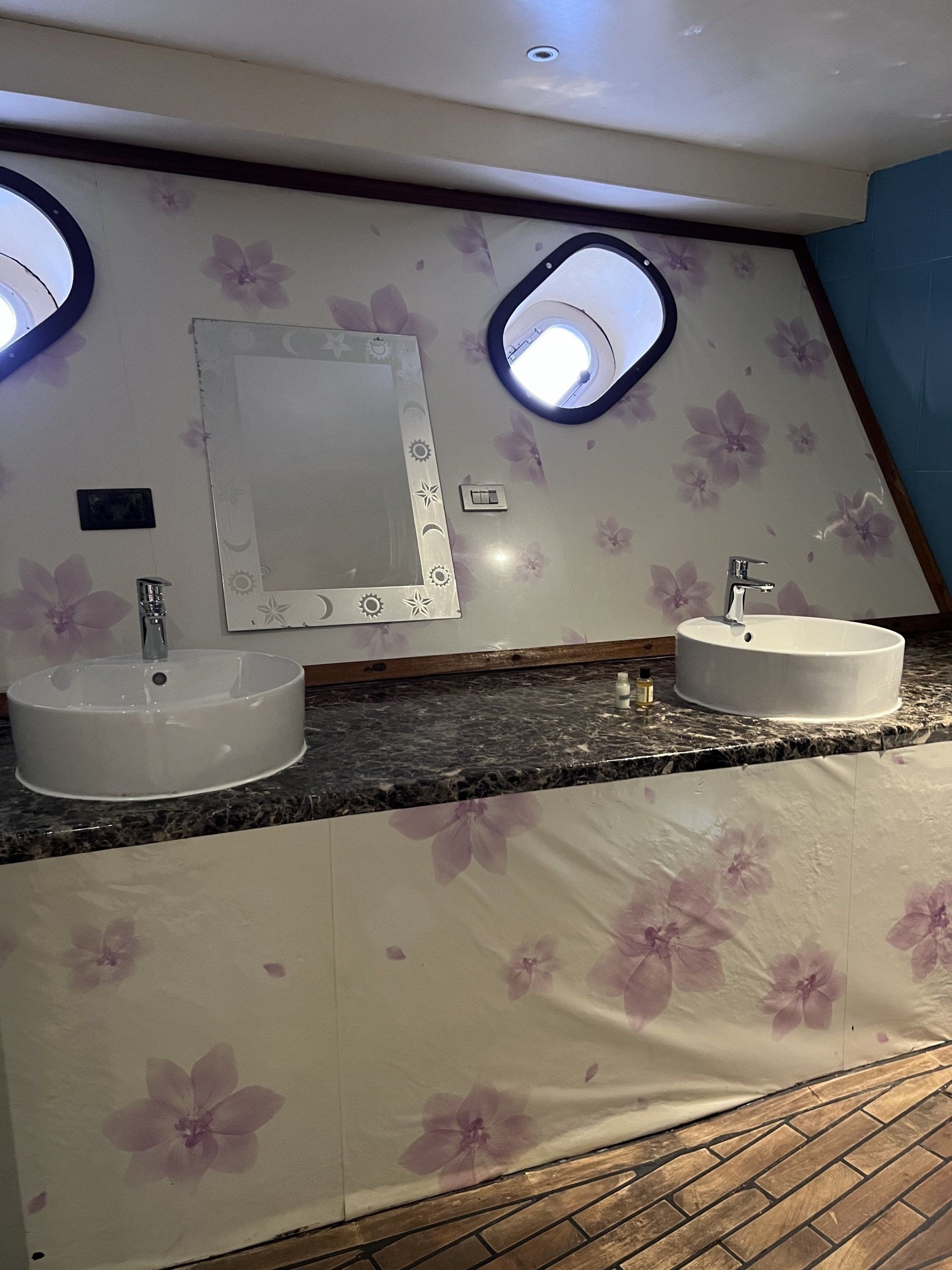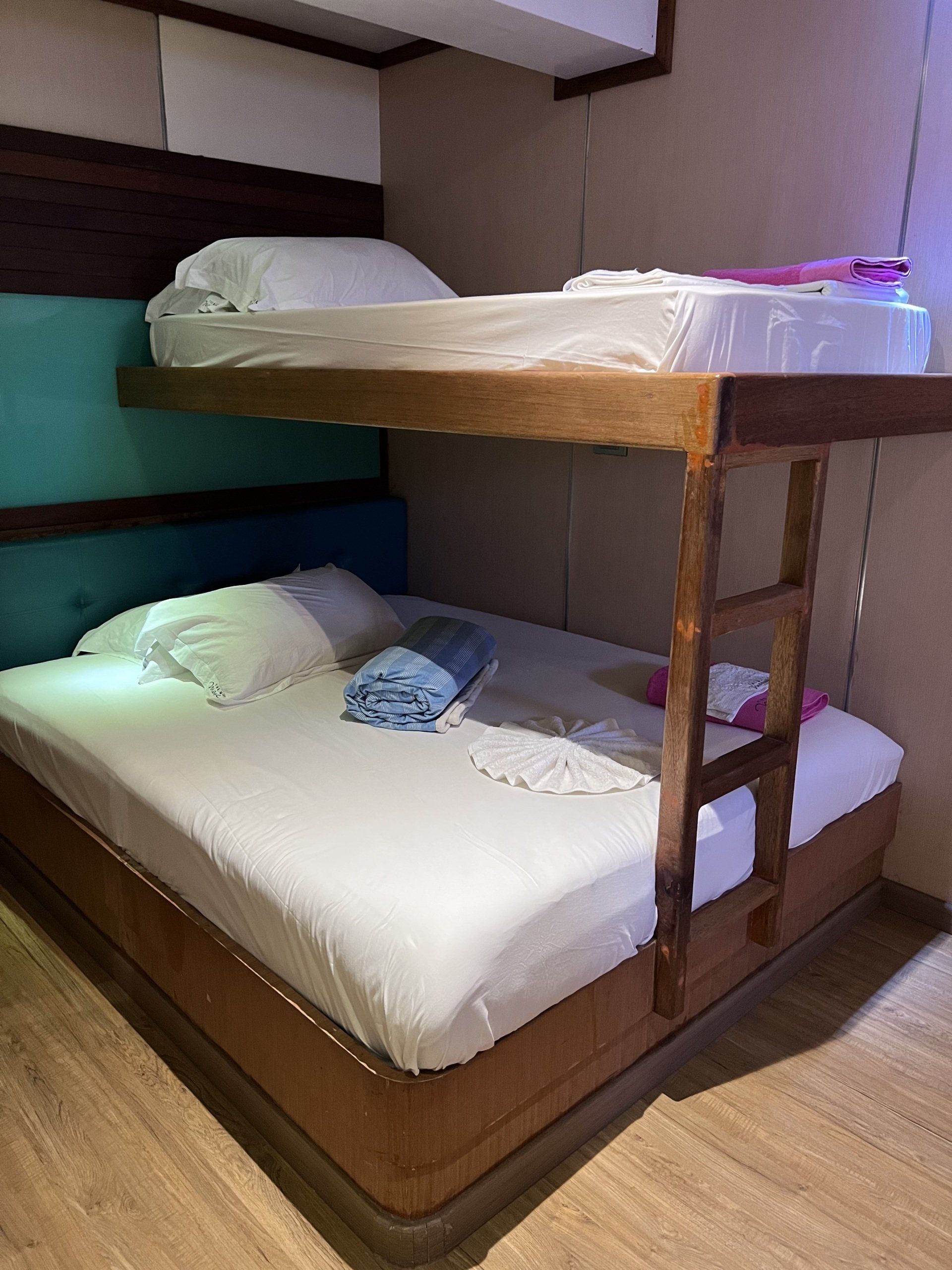 Cuenta con 4 alturas, un total de 12 cabinas, bar, restaurante, cocina, terraza y solarium con jacuzzi. Tiene una capacidad total de 24 plazas. Junto al buque principial navega el Dhoni, barco de buceo que transportará los equipos, tanques y compresores para facilitar el desarrollo de la actividad.e
